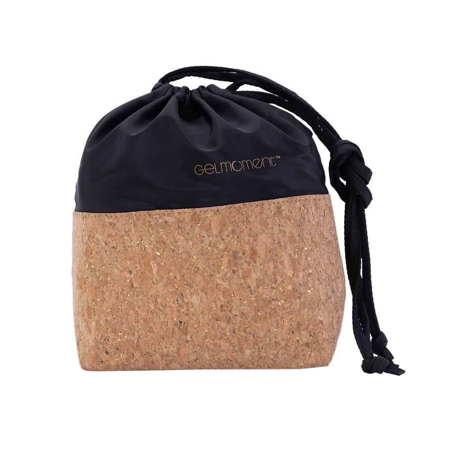 GelMoment’s Cork Drawstring Bag is as sturdy as it is stylish. Tote around your smaller essentials in this perfectly sized and uniquely designed drawstring bag. You have two colour schemes to choose from: cork base with multicolour speckles, pale pink vinyl upper body, and white GelMoment logo; or cork base with gold speckles, black vinyl upper body, and golden GelMoment logo.