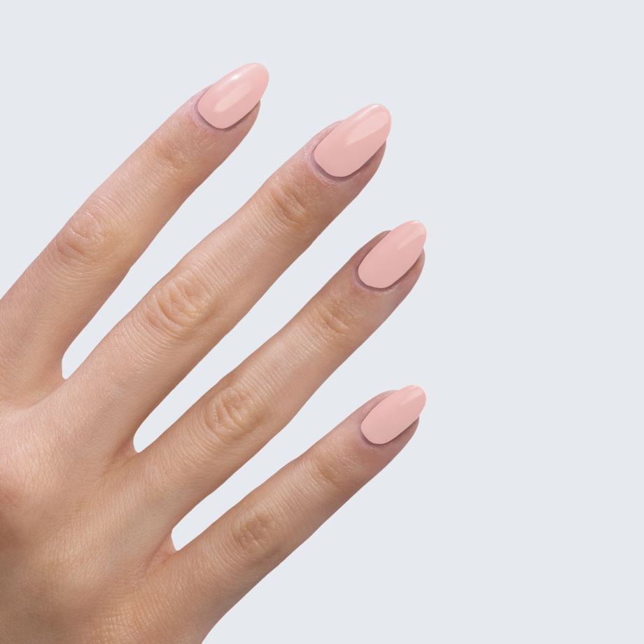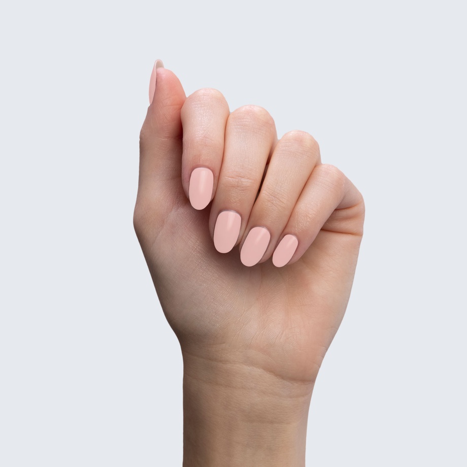 Peach. Pale. Muted. Opaque. Warm undertone.