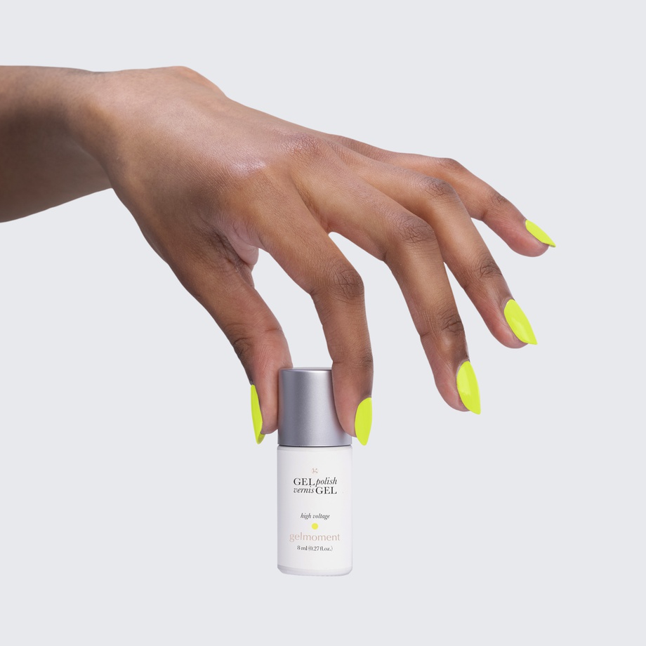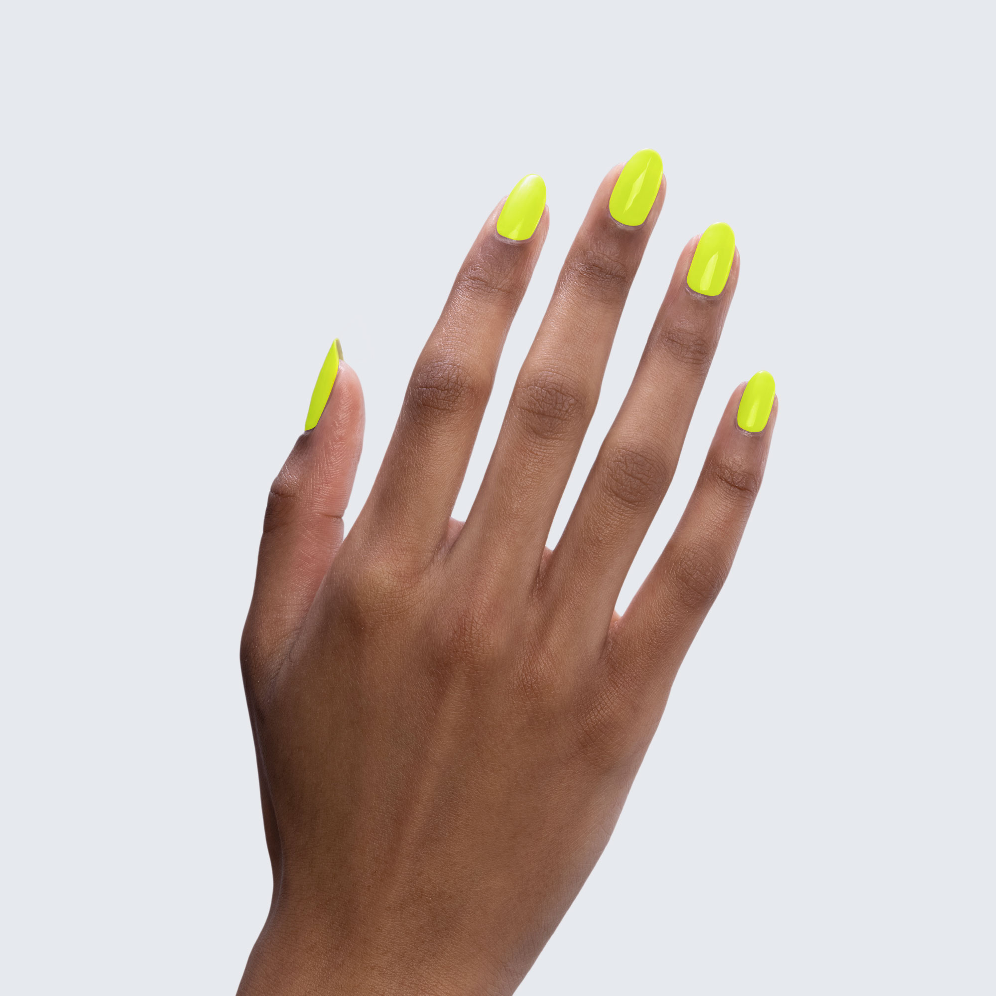 Neon yellow. Bright. Cool undertone. Medium opacity.