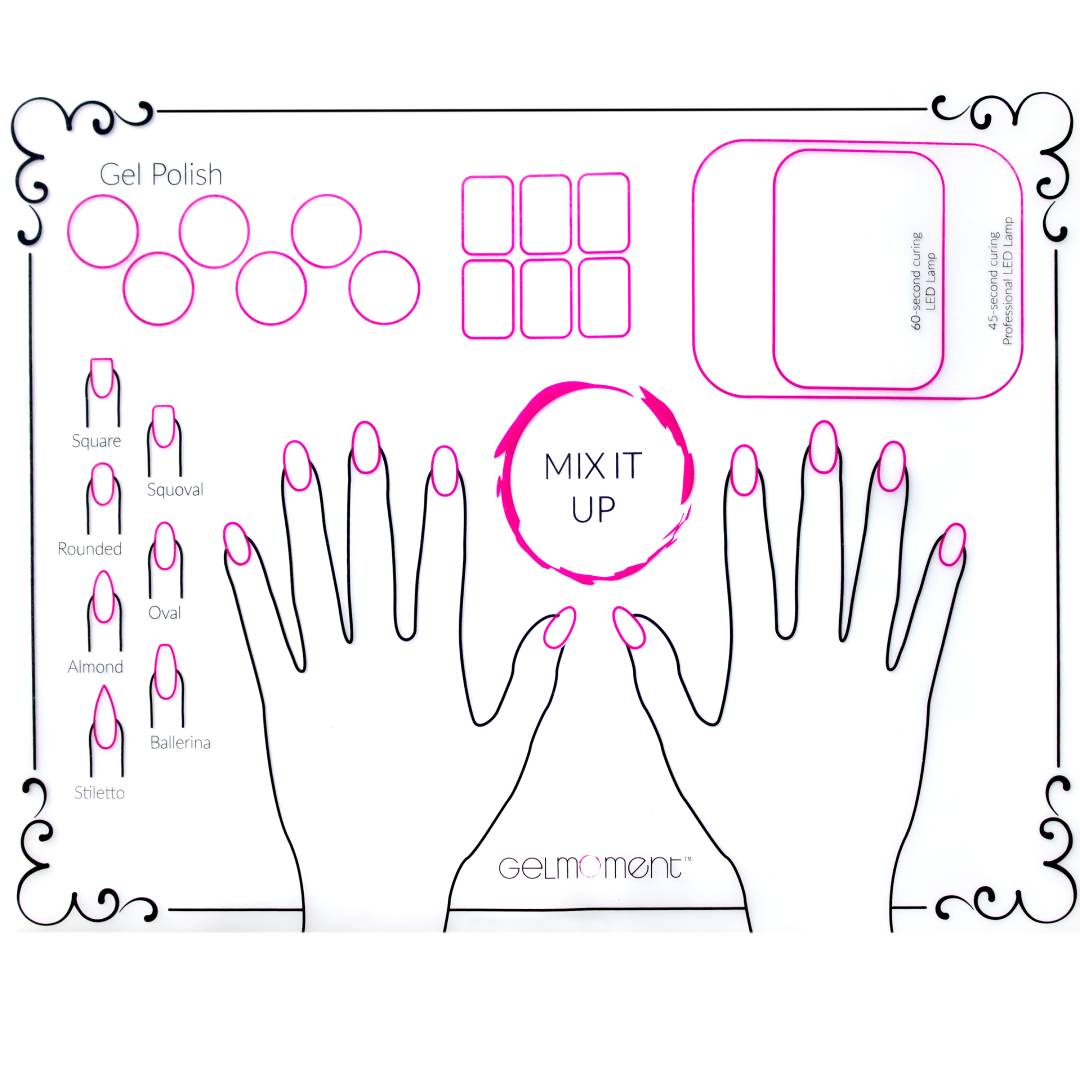 Our new Silicone Mat makes nail art and clean up a breeze! This mat is washable, reusable, and professional! There are sections for practicing your nail art as well as mixing colours and laying out your supplies. Purchase several and use them as place-mats at your parties or events!