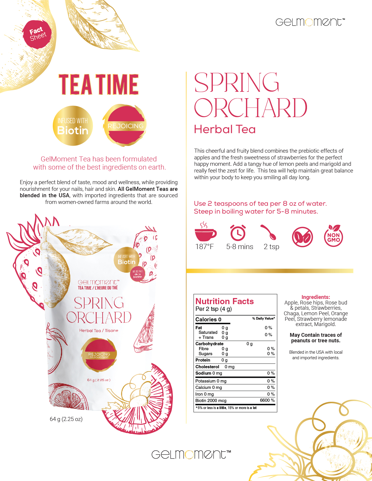 This cheerful and fruity blend combines the prebiotic effects of apples and the fresh sweetness of strawberries for the perfect happy moment. Add a tangy hue of lemon peels and marigold and really feel the zest for life. This tea will help maintain great balance within your body to keep you smiling all day long.