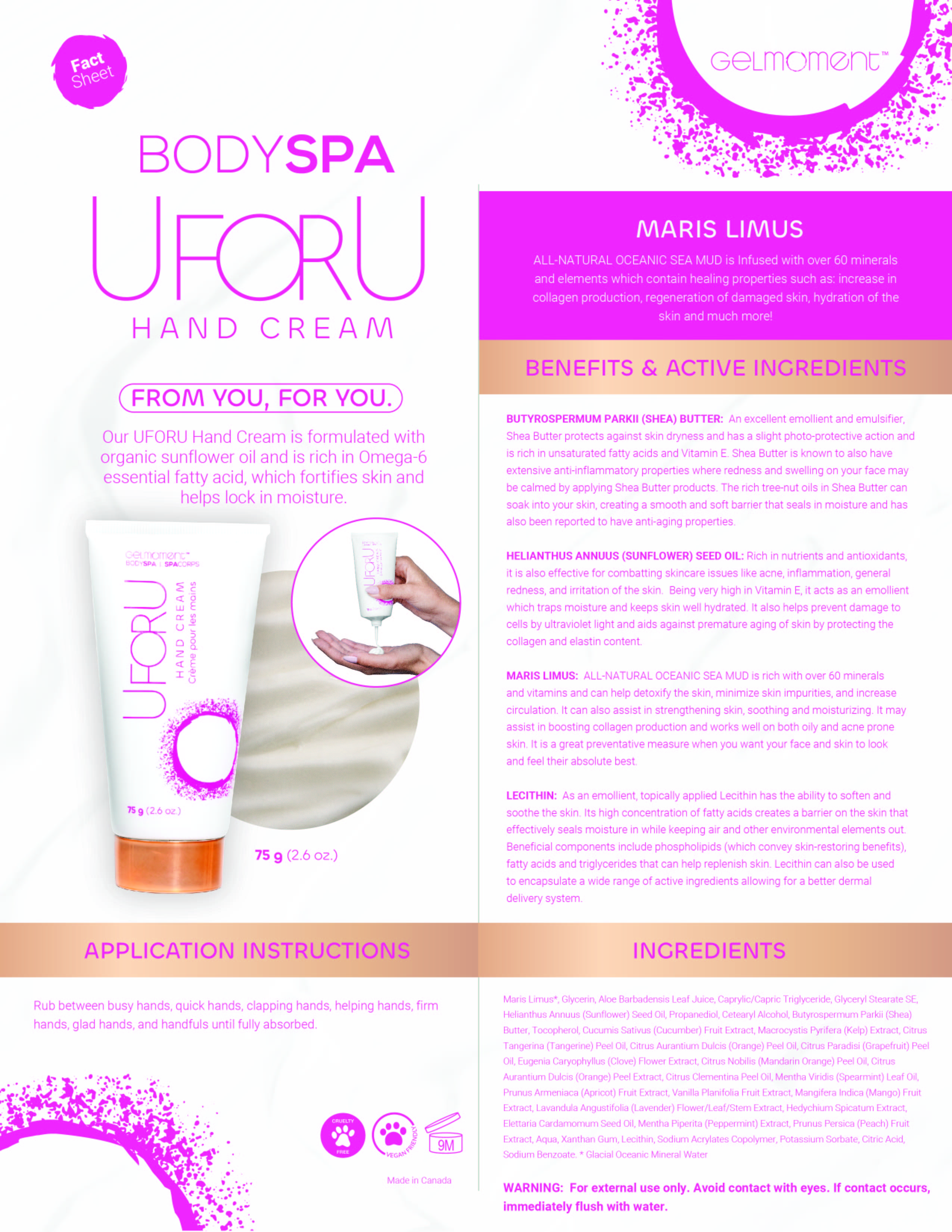 UFORU Hand Cream is the relief your hands have been reaching for. The soft touch of organic sunflower oil fortifies the skin by locking in moisture with Omega-6 essential fatty acids. Whether at home or on the go, keep your hands spa-smooth with gentle yet heavy-duty lotion that gives a whole new meaning to coming in handy.